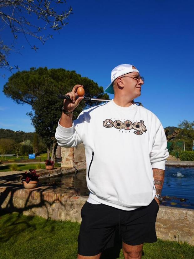 "Великдень уже в Європі та США… Завантаження православного раунду. Тож я тут як слід готуюся – ключка для гольфу в одній руці, яйце – в іншій. Жодних компромісів", – написав Потап.