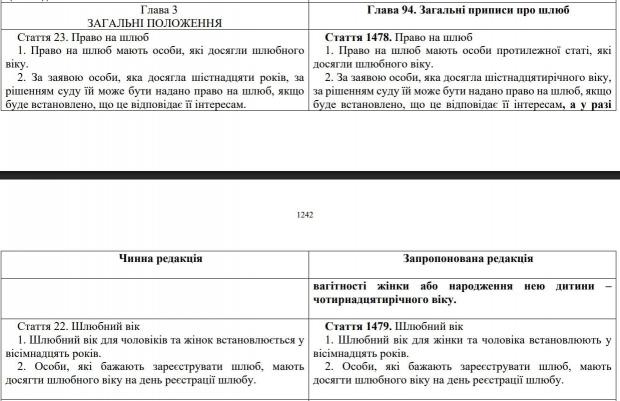 У новому законопроєкті Ради йдеться про те, влада розглядає можливість надання права на шлюб особі 14 років, у разі вагітності або народження нею дитини. Така примітка зазначена, як стаття 1478.