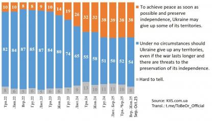 Київський міжнародний інститут соціології оприлюднив результати опитування, проведеного у вересні-жовтні 2025 року. Дослідження показало, що абсолютна більшість громадян виступають проти будь-яких територіальних поступок Росії, передають Патріоти Украї...