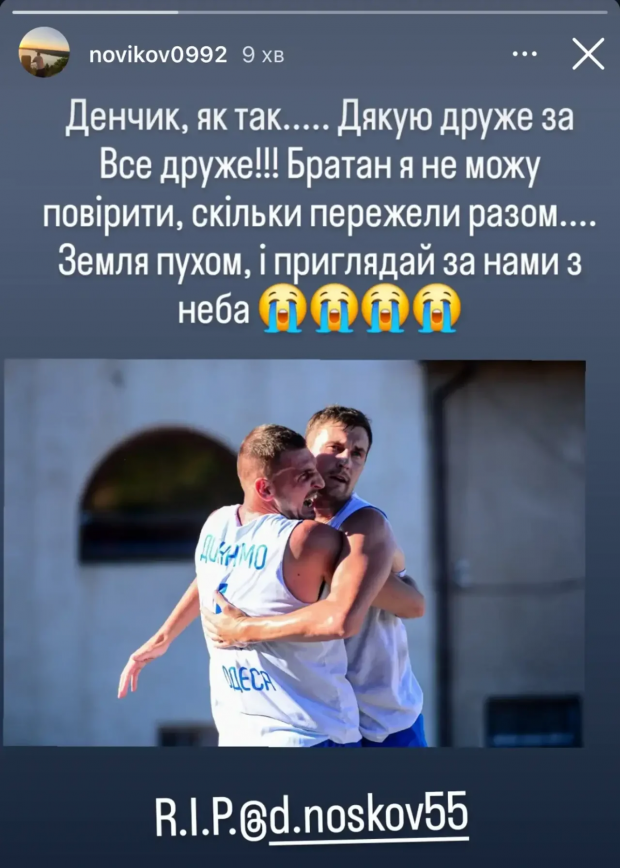 Пішов з життя колишній відомий баскетболіст Денис Носков, який грав у Суперлізі України. Про це на своїй сторінці в Інстаграмі повідомив ексбаскетболіст, а нині військовий Роман Новіков, передають Патріоти України.