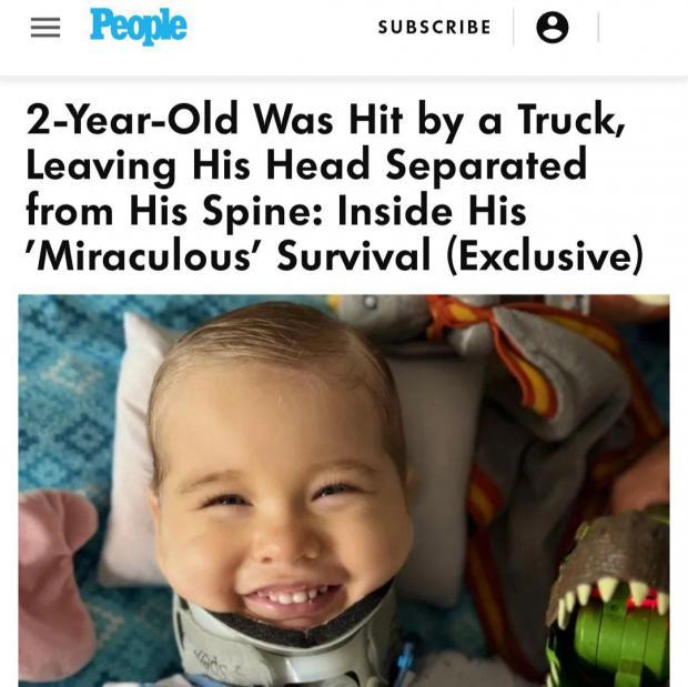 Маленький Джексон Тейлор, 16 місяців, потрапив у страшну аварію, внаслідок якої його шия була розірвана, а голова від’єдналася від хребта. Медики назвали це "внутрішньою декапітацією" - надзвичайно рідкісною та смертельно небезпечною травмою. Лікарі вважали, що шансів на виживання немає, і батьки вже думали про донорство органів, передають Патріоти України.