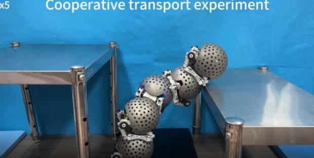 Під час експерименту п'ять однакових роботів працюють спільно, щоб підійматися на верхні платформи. Замість того, щоб покладатися на фіксований механізм, роботи збирають свою власну тимчасову конструкцію. Чотири "равлики" стають один на одного, щоб п'ятий зміг піднятися по них, як по сходах.