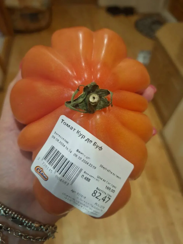 Тим часом Наталія показала півкілограмову помідорину, Катерина — півкілограмову цибулину, а ще одна користувачка - 0,7-кілограмове яблуко.