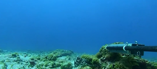 Біля рифу поблизу невеликого острова Ніулакіта до камери підплив денний восьминіг виду Octopus cyanea. За словами морського еколога Кріс Томпсона, тварина не просто зацікавилася об’єктом — вона схопила контейнер із приманкою і потягнула його до укриття серед скель.