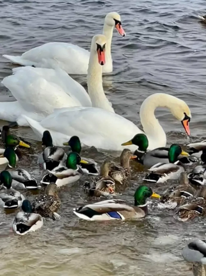 Цієї зими на Оболоні з’явилося місце, повз яке складно пройти байдуже. Поблизу Моста-хвилі, у парку «Наталка», на Дніпрі оселилися десятки лебедів і чубатих качок. Вони спокійно плавають біля берега, не лякаються людей і, здається, щиро радіють кожному...