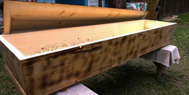 «Собі труну зробив на совість. Куплену не хочу, бо вони слабенькі. Починають закидати глину, то зразу провалюється, а моя – ні, бо це груба дошка. Спочатку мої діти боялися цієї труни, то ховав її всюди – і на сіно», – розповідає майстер. Чоловік майструє труни за традицією свого регіону: кладе стружку зі смереки, аби тіло не лежало на голій дошці, а також вирізає маленьке віконечко, «як у хаті».