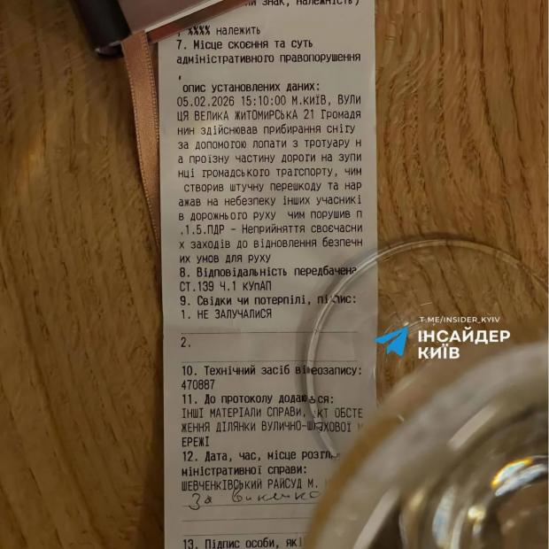 У патрульній поліції Києва розповіли деталі: близько 15 години патрульні обстежували вулично-шляхову мережу з метою подальшого направлення дорожніх служб для прибирання снігу в Шевченківському районі Києві. «Після проходження снігоприбиральної техніки на вулиці Велика Житомирська, громадянин розчистив ділянку тротуару та викидав сніг на посадковий майданчик громадського транспорту. Як наслідок, маршрутні транспортні засоби не змогли здійснити зупинку на посадковому майданчику через значку кількість снігу», – розповіли у патрульній поліції Києва.