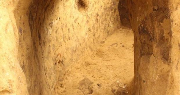 Спочатку археологи досліджували трапецієподібний рів, що датується четвертим тисячоліттям до нашої ери. Поруч знайшли залишки пізнього неоліту третього тисячоліття до н.е. Подальші роботи відкрили кам’яну плиту та довгу овальну яму завдовжки близько двох метрів і завширшки приблизно 75 сантиметрів, яка перетинала поховальний рів під прямим кутом.