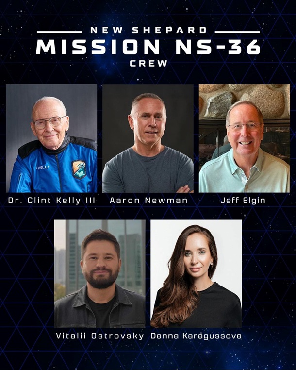 Місія NS-36 стала 15-м туристичним польотом компанії Blue Origin, заснованої Джеффом Безосом. Корабель New Shepard піднявся на висоту 105 кілометрів, перетнувши лінію Кармана — умовну межу між атмосферою та космосом.