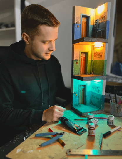 Під’їзди панельних будинків, які ми звикли вважати холодними та сірими, раптом стали теплими та помістилися на долоні. Максим Вінтонів створює унікальні світильники, відтворюючи знайомі нам простори з дивовижною деталізацією, які хочеться розглядати го...