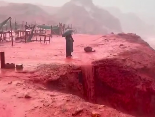 Сильні зливи на іранському острові Ормуз призвели до вражаючого й водночас моторошного явища - частина узбережжя, відома як Червоний пляж, набула насиченого червоного кольору, передають Патріоти України.