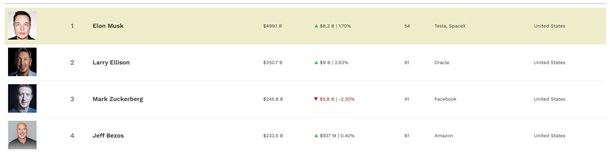 У грудні минулого року Маск став першою людиною в історії, чий статок перевищив 400 мільярдів доларів. Він випереджає другого в рейтингу Ларрі Еллісона на 150 мільярдів доларів.