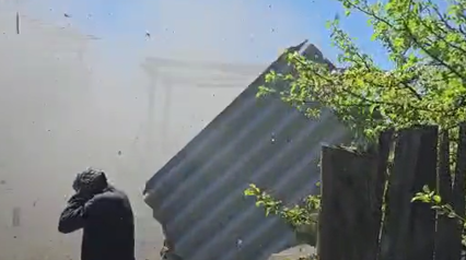 Від ударної хвилі шифер пролетів між двома бійцями ЗСУ, на щастя, нікого не зачепив, передають Патріоти України.