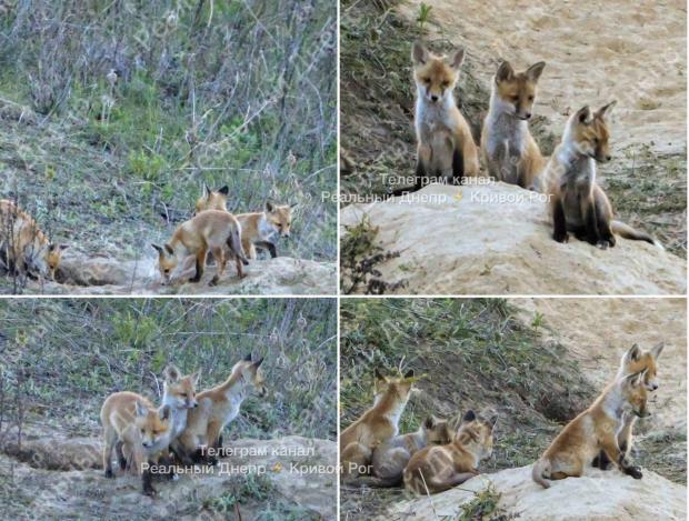 У Дніпрі помітили сім’ю лисів із малятами. Тварин вдалося зафіксувати на фото, передають Патріоти України.
