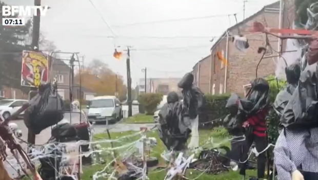 Близько 30 років Ізабель та Андре Лої, що проживають у муніципалітеті Курсель-ле-Лен на півночі Франції, прикрашають свій орендований будинок до Гелловіну. Цю традицію підхопив їхній 23-річний син Ніколя, який працює цирковим актором. На своєму подвір’ї сім’я розставляє фальшиві скелети, надгробки, труни та інші скульптури.