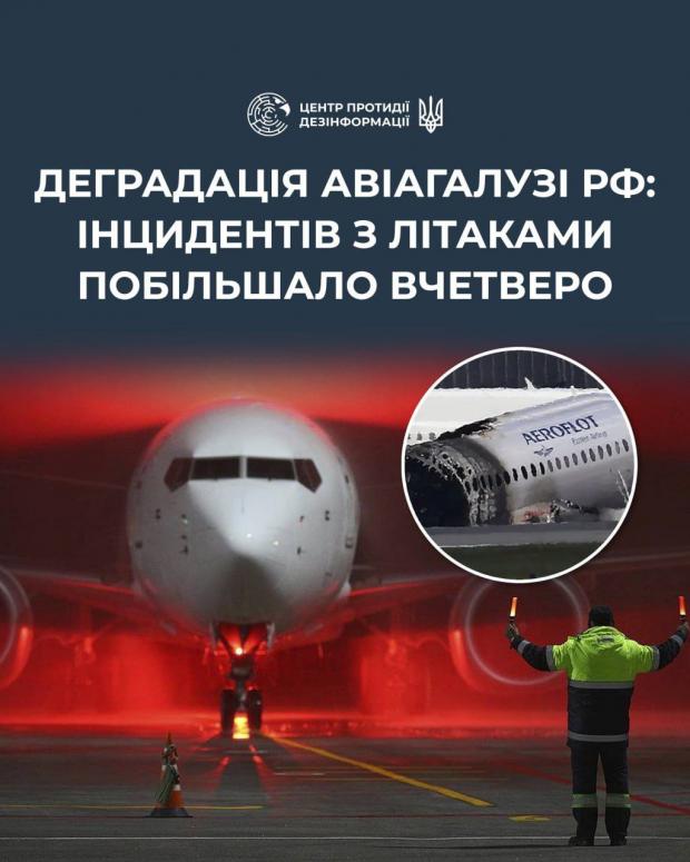 У 2025 році кількість небезпечних інцидентів з літаками в Росії зросла вчетверо, передають Патріоти України.