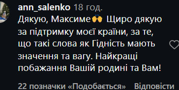 У коментарях українці подякували артисту за привітання та його підтримку. «Дякую, Максиме. Щиро дякую за підтримку моєї країни, за те, що такі слова як Гідність мають значення та вагу. Найкращі побажання Вашій родині та Вам!» – написала одна з користувачів.