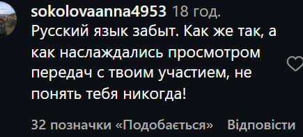 Попри те, що у коментарях переважали українц, росіяни все ж таки висловили своє невдоволення щодо позиції російського артиста. «Русский язык забыт. Как же так, а как наслаждались просмотром передач с твоим участием, не понять тебя никогда!» – написав користувач.