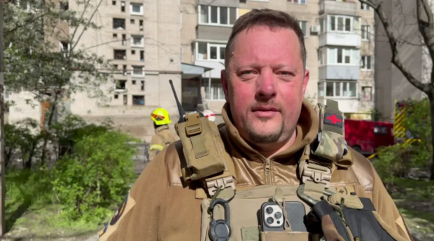 «До сьогоднішньої ночі я жив у цьому під'їзді. Я жив в цьому дворі. Це всі мої сусіди ось тут. У мене тут була квартира. Сьогодні я безхатько. Немає ні документів, ні оселі, ні одягу. Я з команди волонтерів швидкого реагування. Наші хлопці сьогодні витягували людей із-під завалів, яких затягувало димом і які не могли дихати», — розповів чоловік.