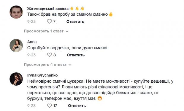 Думки щодо вартості цукерок розділилися. Частина коментаторів обурюється через високу ціну, інші ж пишуть, що це якісні цукерки, які не можуть бути дешевими.