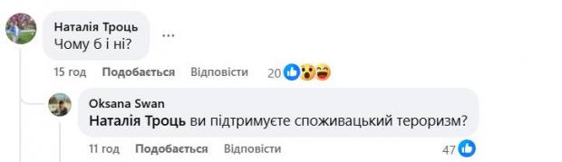 Користувачка Оксана Сван назвала таку поведінку «споживацьким тероризмом».