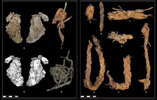 Раніше вчені виявили 37 волоконних шнурів, кошиків і вузлів; 15 дерев'яних знарядь; і три зшитих шкури. Під час нового дослідження вчені датували їх радіовуглецевим методом і підтвердили, що всі вони належать до періоду молодшого дріасу. Шнури були сплетені з трьох ниток і виготовлені з волокон полину, кутрового дерева, ялівцю і гіркого полину. Ширина шнурів варіювалася від 0,33 до 2,5 сантиметрів, що вказує на те, що вони використовувалися для різних цілей.