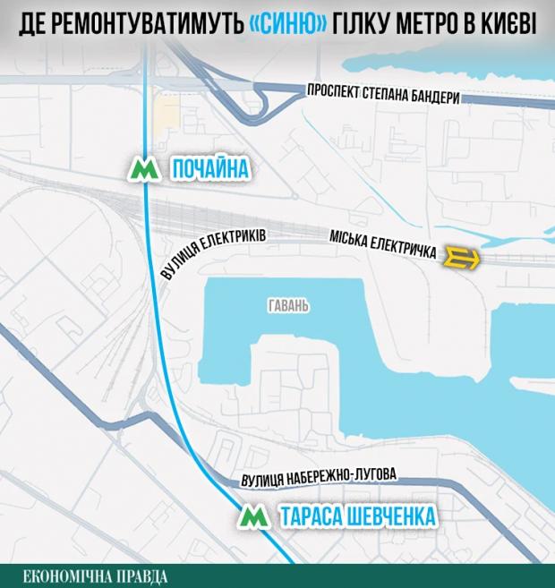 Довжина перегону між "Тараса Шевченка" і "Почайною" становить 1 240 метрів, тобто планували відремонтувати не весь тунель, а сьому частину перегону. Вона розташована ближче до станції "Почайна", поруч з коліями однойменної станції залізниці.