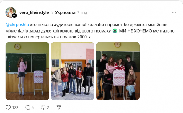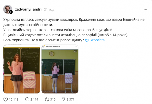 Приводом для масового обурення українців стала спільна рекламна кампанія з українським брендом одягу, у якій користувачі побачили недоречну сексуалізацію неповнолітніх. Після хвилі хейту «Укрпошта» видалила рекламний допис.