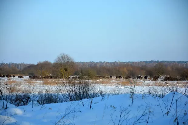 "У нинішні морозні та засніжені дні на полях та вкритих масивним снігом луках, на узліссях та лісами Бродівської громади Золочівського району Львівщини бродить стадо ось таких чудових велетнів...", - йдеться у повідомленні.