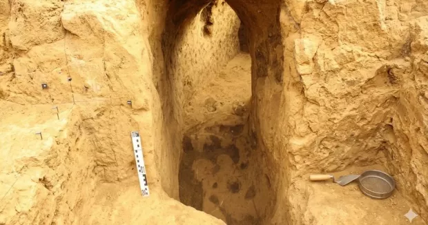 Спочатку підземний прохід виглядав як овальна яма завдовжки близько двох метрів і завширшки до 75 сантиметрів. Оскільки вона була щільно закрита важкою кам’яною плитою, дослідники спершу припустили, що це могила. Однак цю версію швидко відкинули, коли всередині знайшли фрагменти пізньосередньовічної кераміки.