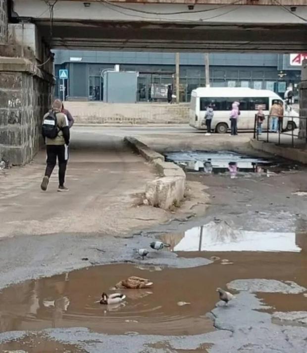 У Дніпрі дикі качки помітили величезну калюжу біля Комінтернівського ринку та перетворили її на імпровізовану водойму. Птахи спокійно купалися, чистили пір’я і зовсім не зважали на міський рух поруч, передають Патріоти України.
