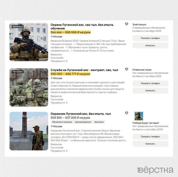 Однак кореспондент, який звернувся до вербувальників під виглядом шукача роботи, дізнався, що реальні умови не мають нічого спільного з обіцяним. Замість неіснуючої «Луганської АЕС» новобранців можуть відправити куди завгодно — на об’єкти в Курській області, на тимчасово окуповані території України, до Керченського мосту, на Запорізьку АЕС або безпосередньо на передову.