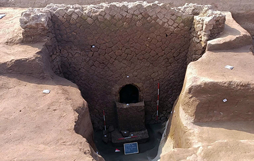 Усередині саркофага дослідники виявили тіло, що лежало обличчям догори, вкрите добре збереженим саваном. Навколо розміщувалися глечики з мазями та інструменти для очищення тіла, які традиційно використовувалися під час античних похоронних ритуалів.