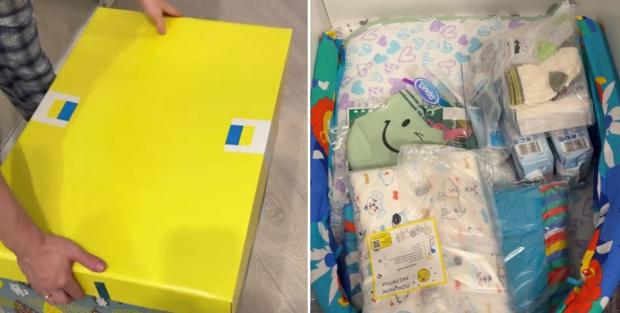 У коробці батьки також знайшли засоби гігієни (мило, шампунь, креми), посібник з важливою інформацією про догляд за дитиною, розвивальну гру та іграшки.