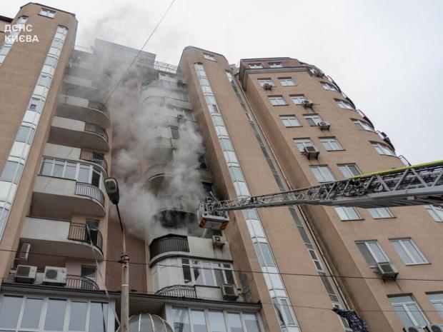 Повідомляють, що під час гасіння пожежі в багатоповерхівці в Шевченківському районі врятували двох людей. Інформація про пожежу в багатоповерхівці на Кудрявському узвозі надійшла об 11.39. Пожежу ліквідували о 12.39 на площі 40 м².