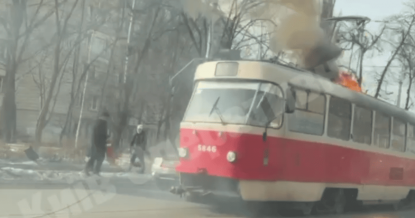 У Києві на вулиці Кирилівській на Подолі під час руху загорівся трамвай. За попередніми даними, загоряння сталося на даху електротранспорту. Як видно на кадрах, опублікованих Telegram-каналом "Київ оперативний", вогонь виник на даху вагону в районі пан...