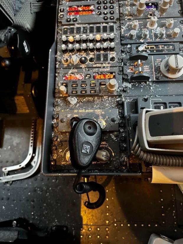 Крім того, пілот, який перебував за штурвалом, отримав синці на руці, що свідчить про фізичний вплив, можливо – через удар дрібного об’єкта, який пробив або вдарив по зовнішньому шару скла.