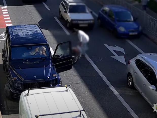 На відео, яке поліція Києва оприлюднила 30 вересня, видно, що чоловік на велосипеді робив зауваження водіям автомобілів, котрі стояли на велодоріжці. Кілька машин від'їхали одразу, але водій синього позашляховика Mercedes, як видно на цих кадрах, після короткої розмови завдав ударів у голову велосипедисту. Велосипедист упав і водій відтягнув його на узбіччя, а сам поїхав.