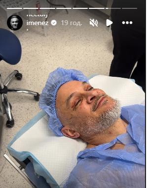 Він виклав у мережу невелике відео, на якому лежить на каталці перед початком операції, а також фотографію, зроблену вже під час блефаропластики.