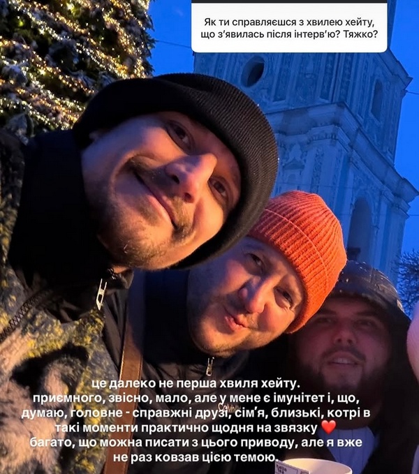 Тарас зізнався, що був готовий до великої кількості хейту після виходу шоу та його інтерв'ю. «Це далеко не перша хвиля хейту, — розповів актор. — Приємного, звісно, мало, але у мене є імунітет, що головне — справжні друзі, сім'я, близькі, котрі в такі моменти практично щодня на зв'язку».